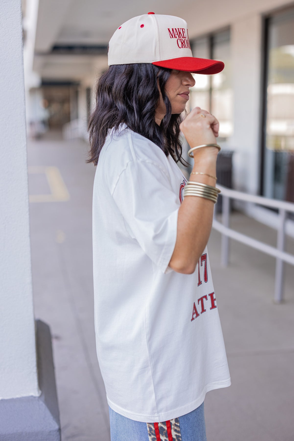 Whether you're cheering on the dawgs from the sidelines or enjoying the festivities at the tailgate, our Georgia Bulldogs Athens GA Unity Oversized Crewneck Tee is sure to keep you looking and feeling fabulous all season long. Shop the look: Hat | Pants | Sneakers