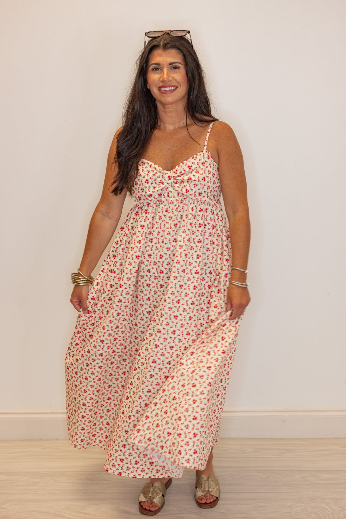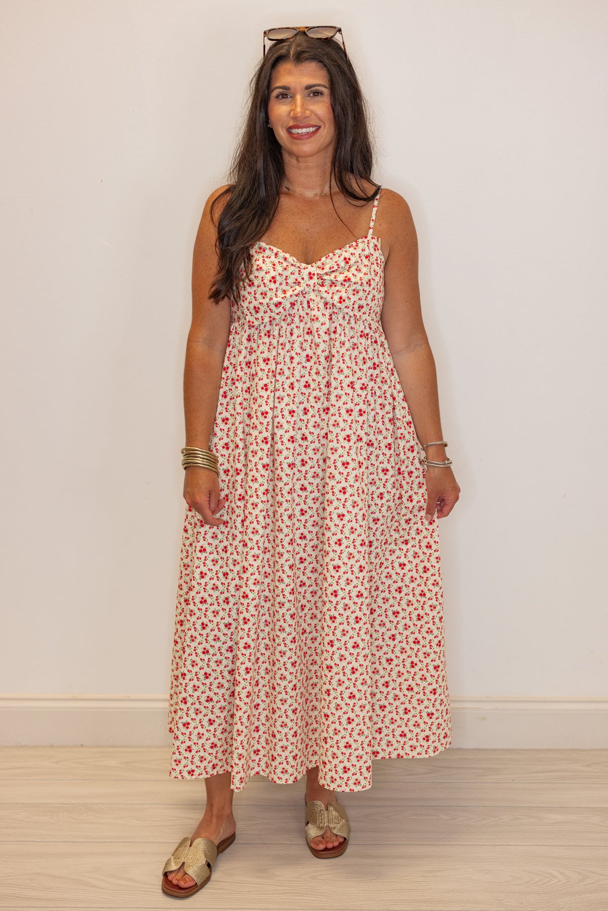 Be the envy of the garden party in this Floral Bow Cream Midi Dress! Cream fabric with hot pink and red floral print is perfect for any summer event. The sleeveless style with spaghetti straps and a large decorative bow tie across the bodice will have you feeling effortlessly elegant and playful at the same time!
