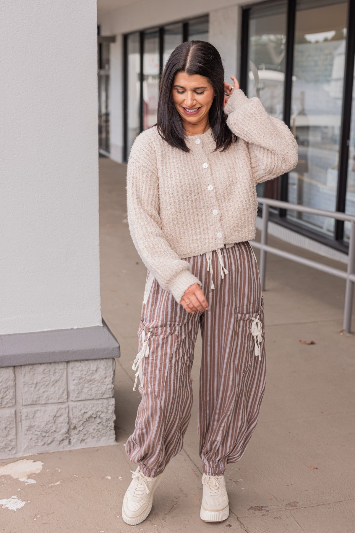 Wrap yourself in cozy charm with the Sweetest Days Cream Sweater Cardigan! Featuring a fuzzy soft knit that feels like a warm hug, this playful piece boasts a button front closure, a classic crew neckline, and long balloon sleeves that add a touch of whimsy to your look. Perfect for brightening up any day with comfort and style - whether you button her up, or wear her open as cute cardigan! Shop the look: Jogger Pants