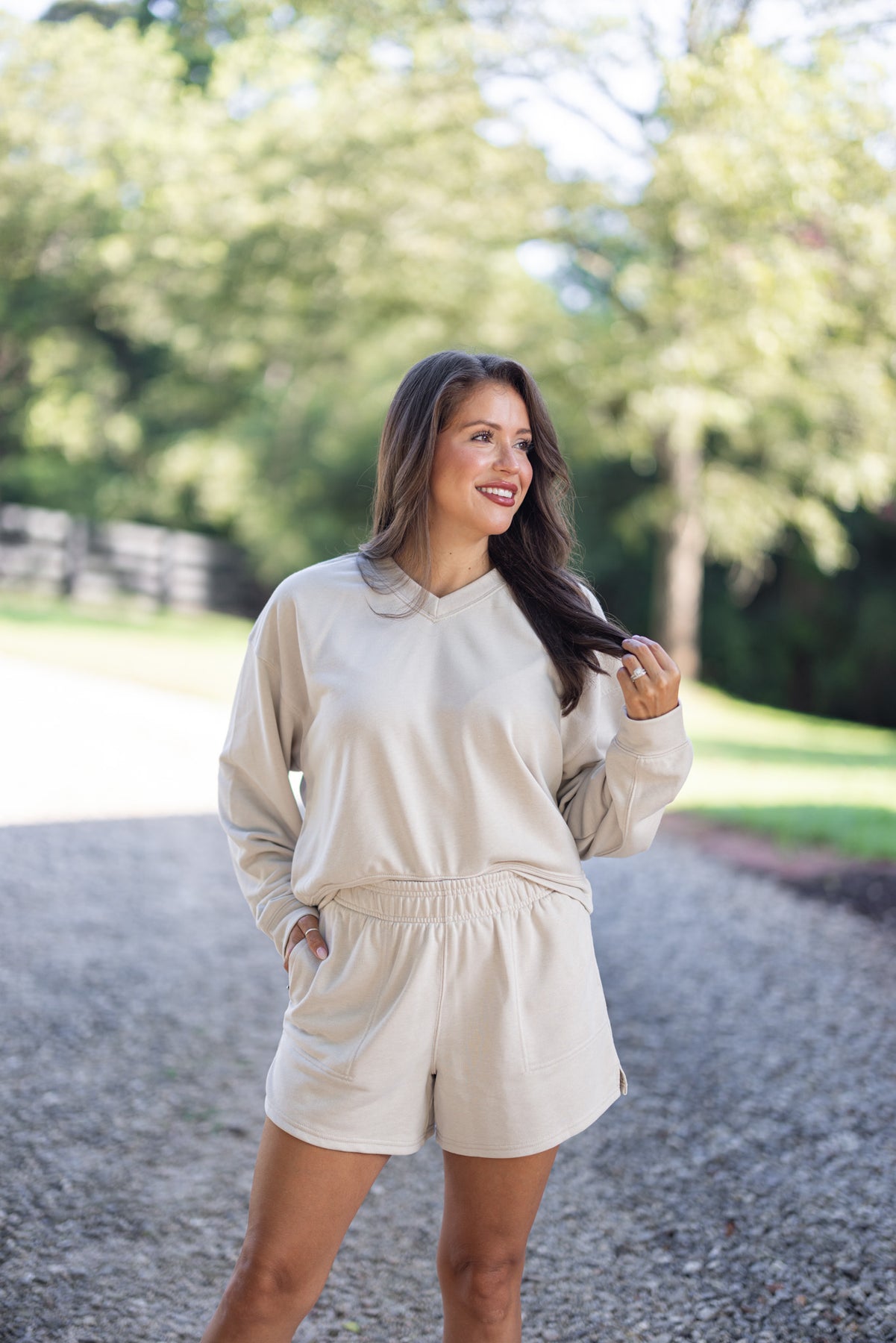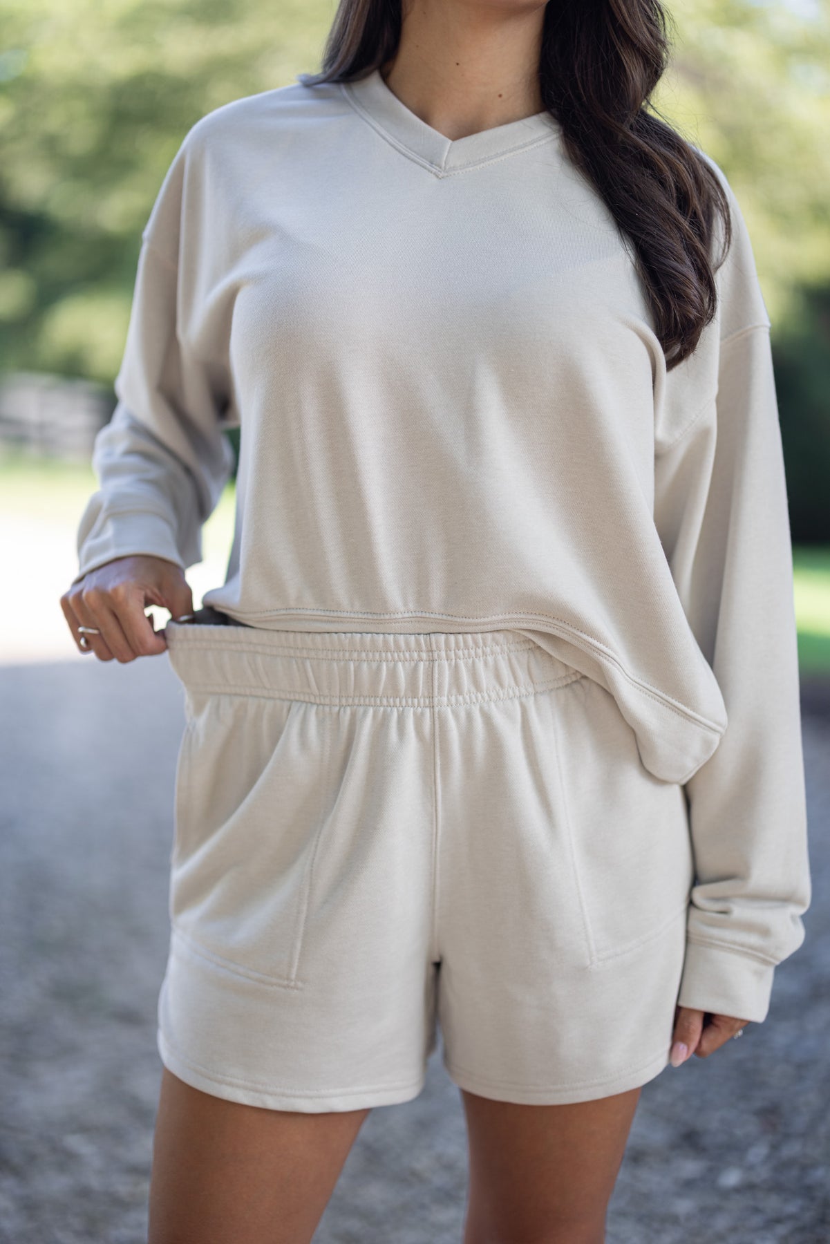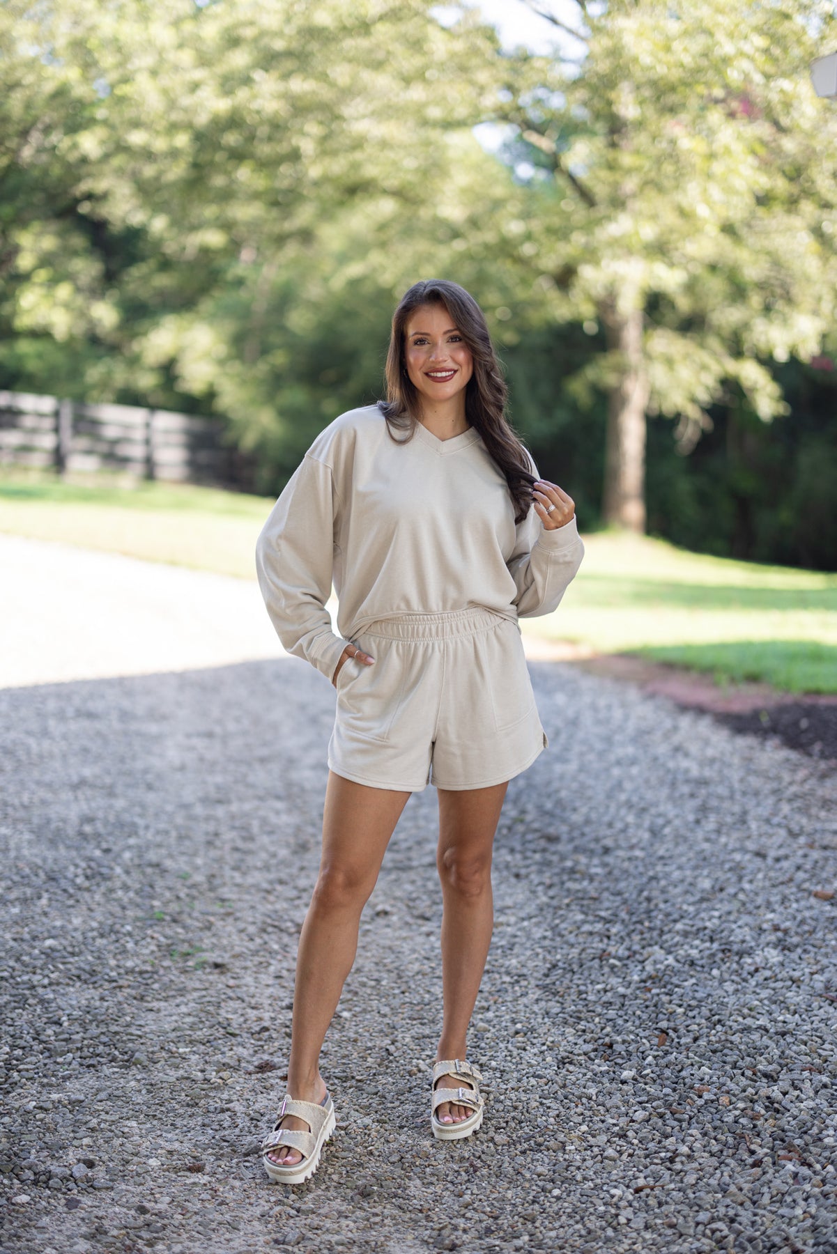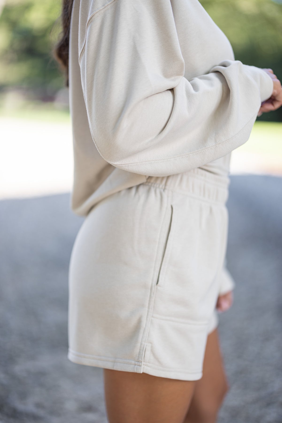 You can feel both casual and perfectly put together in these super cute terry knit shorts! Featuring a comfy elastic waistband, front pockets, and side slits in the hem. Just right for those who want their fashion to feel cozy! Grab the matching sweatshirt for an Everyday Perfect outfit!